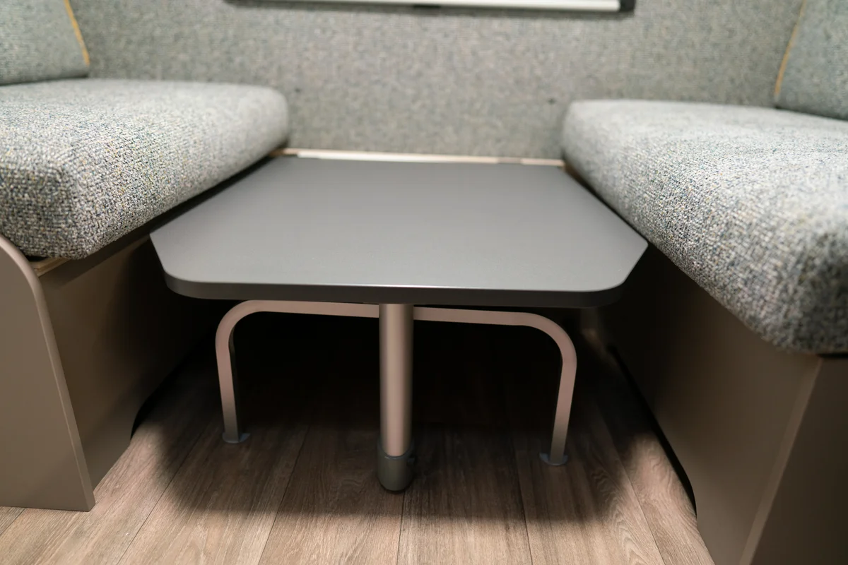 Wohlfühlen und genießen – in der gemütlichen Sitzecke mit herrlicher Aussicht durch drei Fenster und einem Dachfenster für den Blick in den Himmel. LEDs setzen das perfekte Licht, Rollos schützen, die Couch wird im Handumdrehen zum dritten Bett.