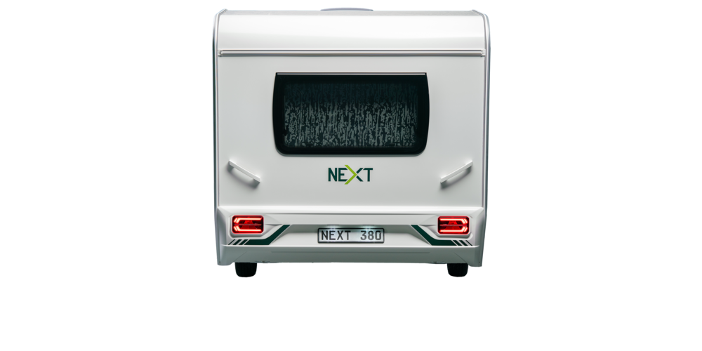NEXT 380: Der kompakte Wohnwagen für Abenteurer! Die Sandwichbauweise mit Glattblech garantiert hohe Stabilität bei geringem Gewicht. Intelligente Isolierung schafft Wohlfühl-Klima.